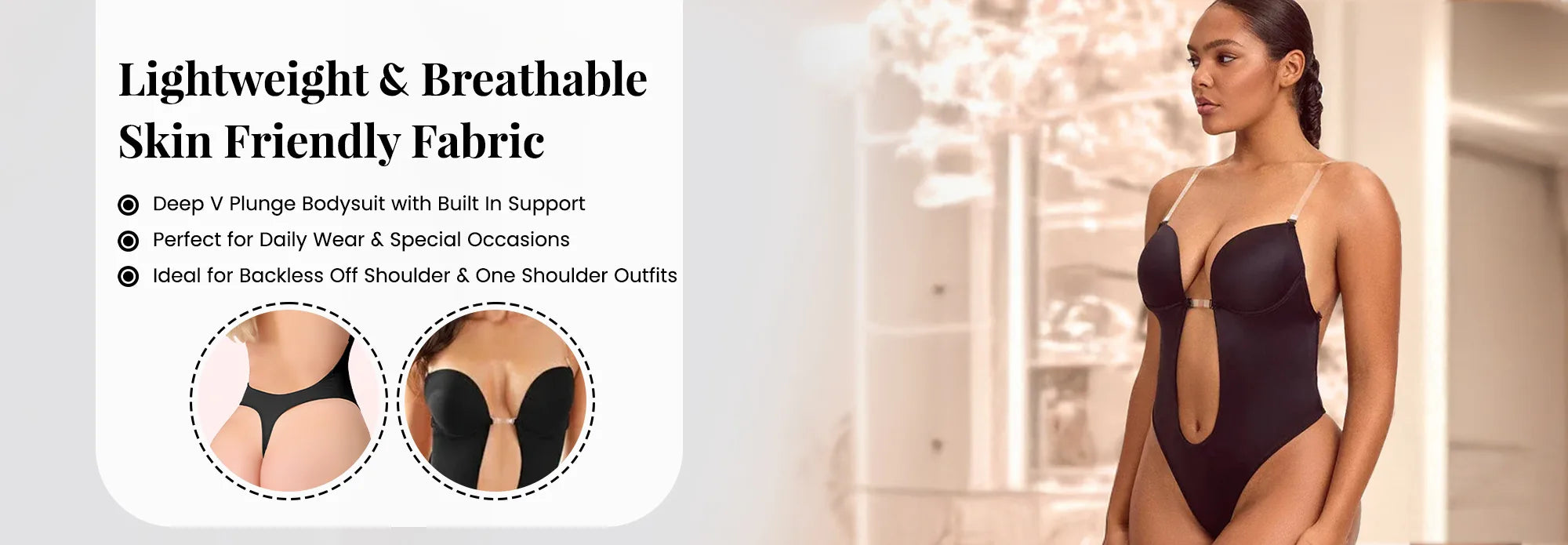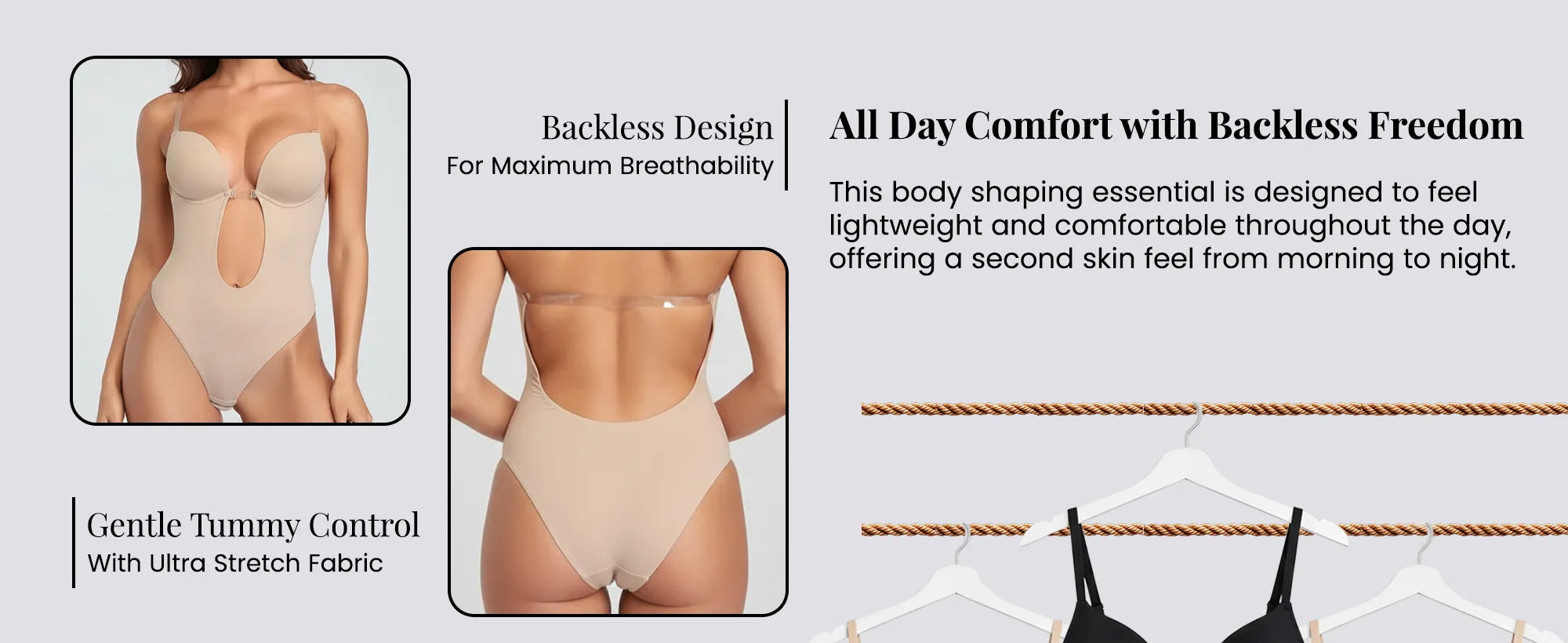The Backless Bodysuit is made from ultra-soft, breathable materials and features adjustable straps, ensuring all-day comfort and ease of movement.